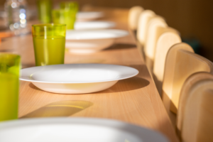 Das Mittagessen findet in der Regel gegen 13.00 Uhr statt. Die Kosten liegen pro Gericht bei ca. 3,00 Euro. Das Essen wird durch die Firma Apetito geliefert und schonend in Convectomaten zubereiten. Das Küchenpersonal achtet auf eine ausgewogene und kindgerechte Ernährung. Das Essen findet in familiärer Atmosphäre statt, in der Zeit für Gespräche und Erholung bleibt.